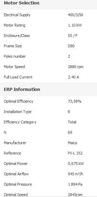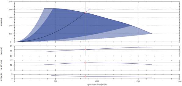 Légszállítás: Vnévl=2100 m3/h, Dp(st)=910 Pa.