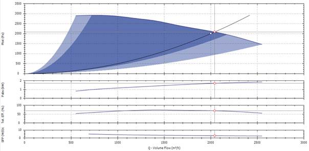 rendszerveszteségekre további 1000 Pa-t becsülünk, és a ventilátor